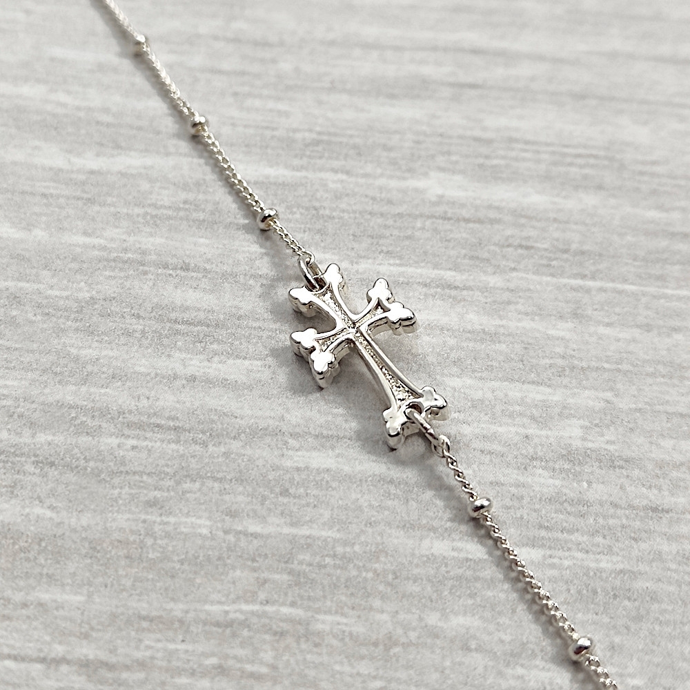 Ce modèle est composé d’une petite croix arménienne pour femme sur une chaîne perlée.